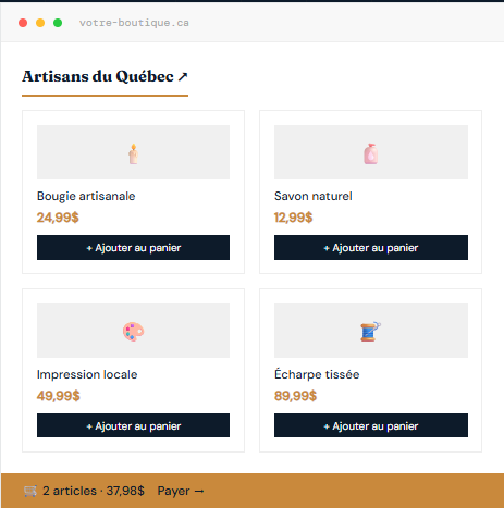 Dites-nous ce que vous vendez — on vous montre comment votre boutique pourrait ressembler et combien ça prendrait pour la lancer.